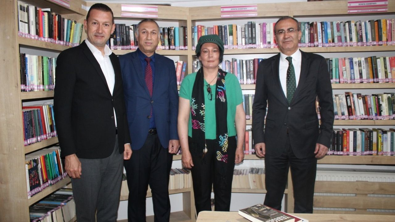 Yazar Emine Işınsu Öksüz adına bu yıl ilk kez düzenlenen roman ödülünü “Cümbezin Kızı” adlı eseriyle kazanan Eğitimci Yazar Ülkü Demiray’a Bor Kaymakamı Mehmet Yavuz Bor Halk Kütüphanesinde çiçek takdim ederek tebrik etti.