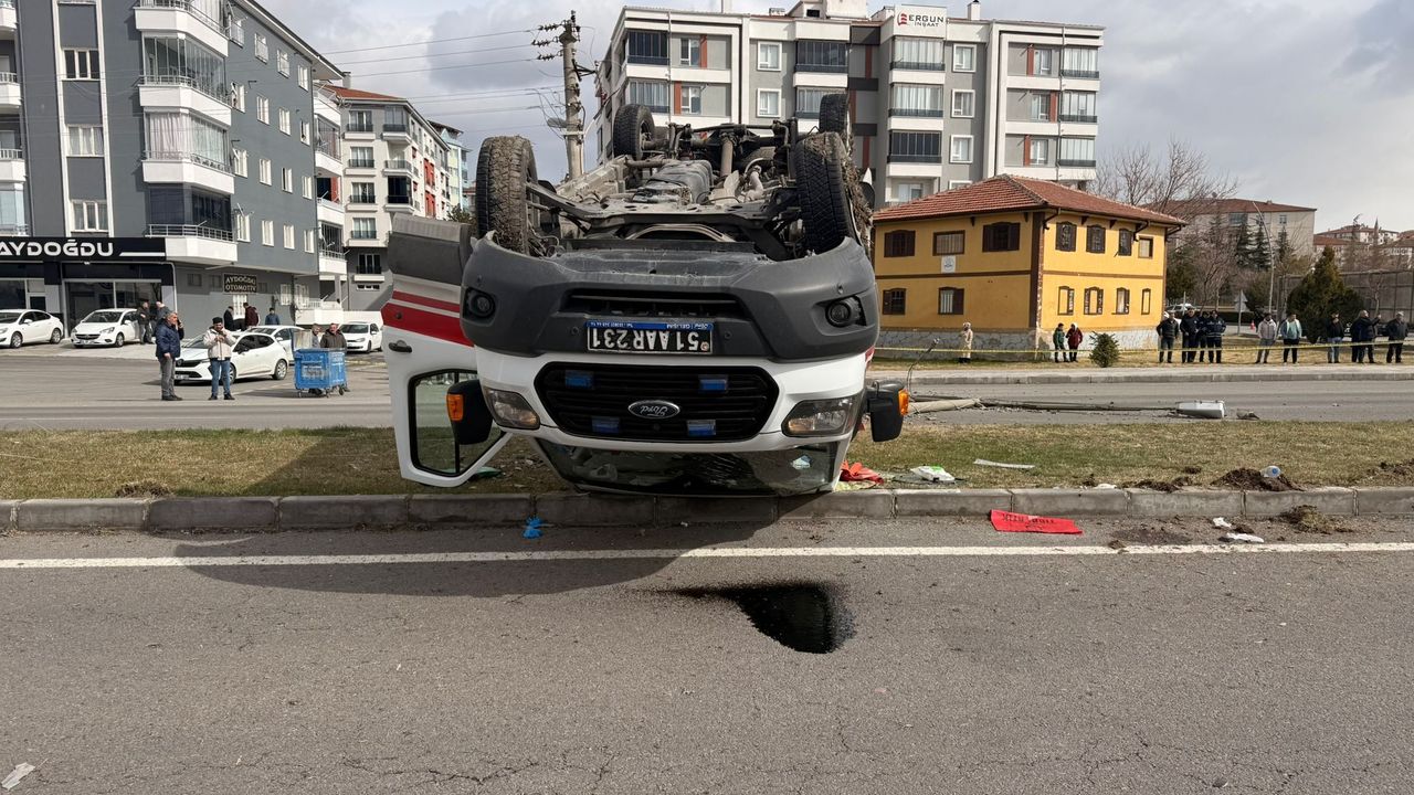 Niğde’nin Bor ilçesinde, meydana gelen trafik kazasında ambulans ile kamyonet çarpıştı. Çarpışmanın etkisiyle savrulan 51 AAR 231 plakalı ambulans takla atarak durabildi.
