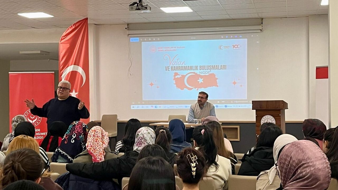 Niğde Fadimana Halisdemir Yurdunda “Vatan ve Kahramanlık Buluşmaları” programı kapsamında bir gazi öğrencilerle buluştu.