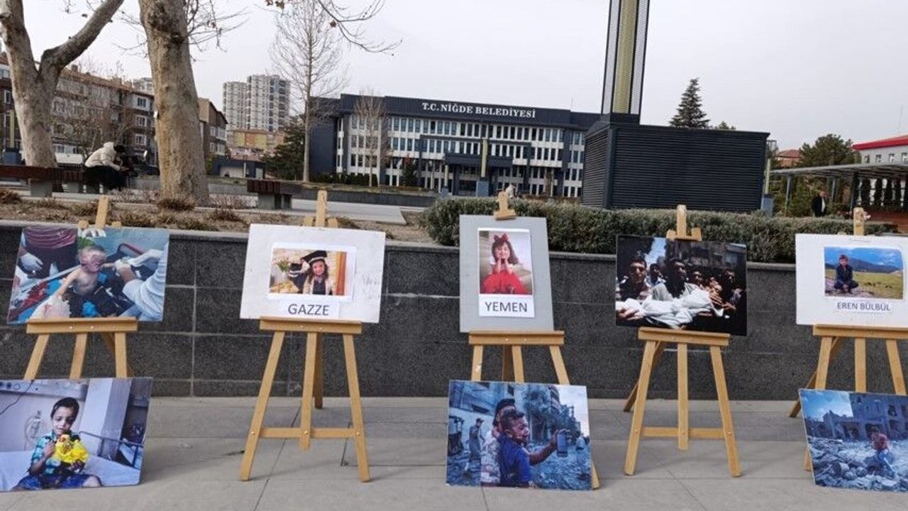 Niğde İHH İnsani Yardım Derneği tarafından farkındalık oluşturmak amacıyla hazırlanan sergi, ziyaretçilerini ağırlıyor. Sergide, dünyanın farklı coğrafyalarında yaşanan savaşlar, işgaller ve insan hakları ihlallerinin çocuklar üzerindeki etkileri, resimler aracılığıyla anlatılıyor.
