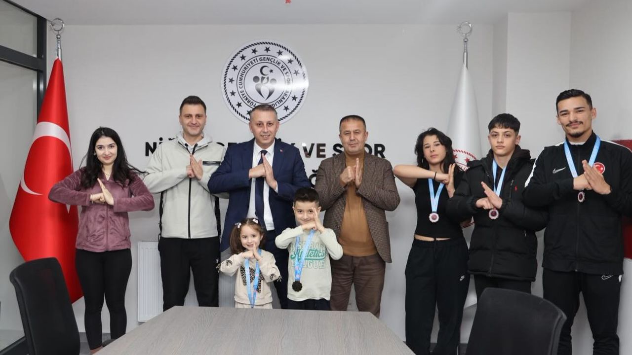 2026 Yılı Wushu Türkiye Şampiyonası’nda derece elde eden Niğde’li sporcular, Niğde Gençlik ve Spor İl Müdürünü makamında ziyaret etti.