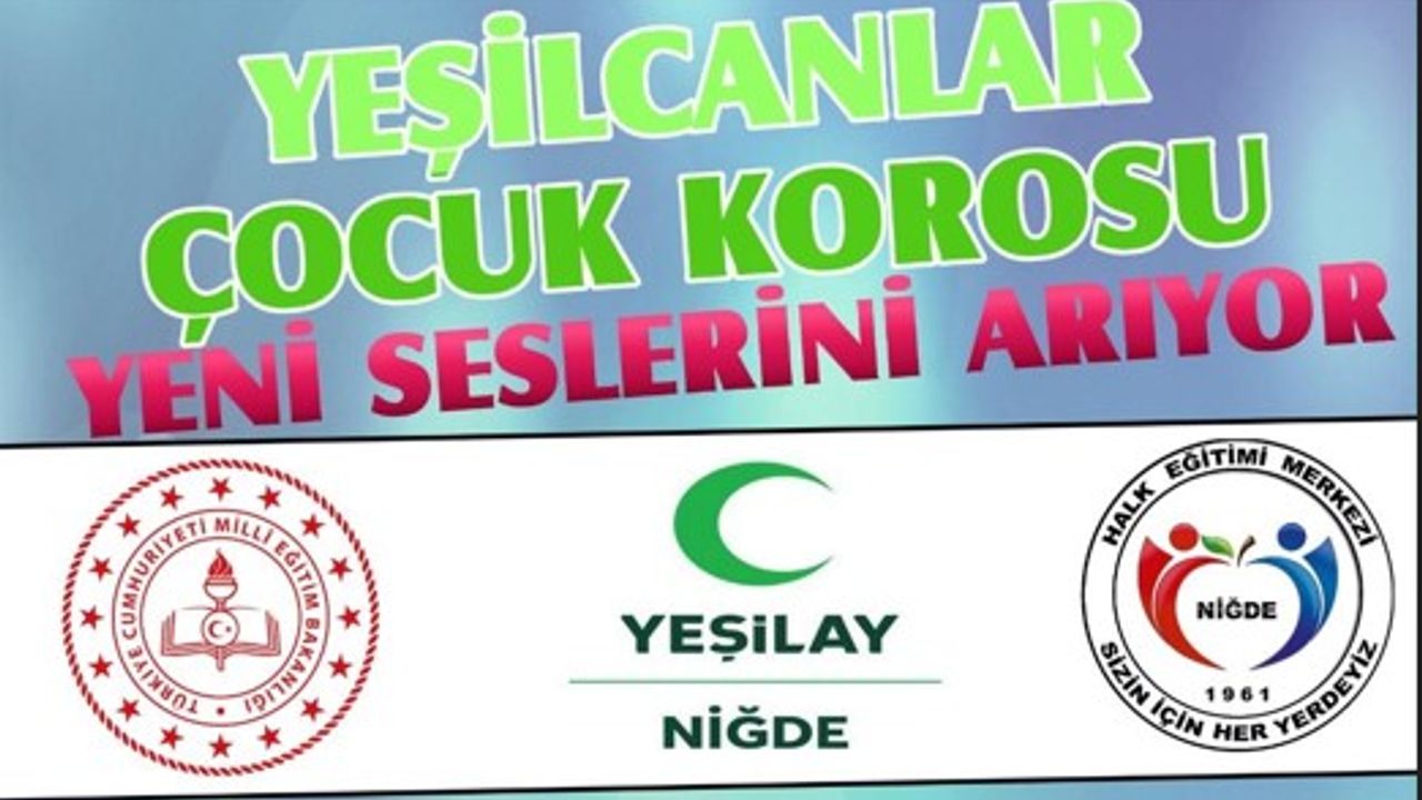 Yeşilay Niğde Şubesi tarafından 8 yaş ve 13 yaş arası Yeşilcanlar Çocuk Korosu adı altında kurs niteliğinde bir çalışma gerçekleştirilecek.